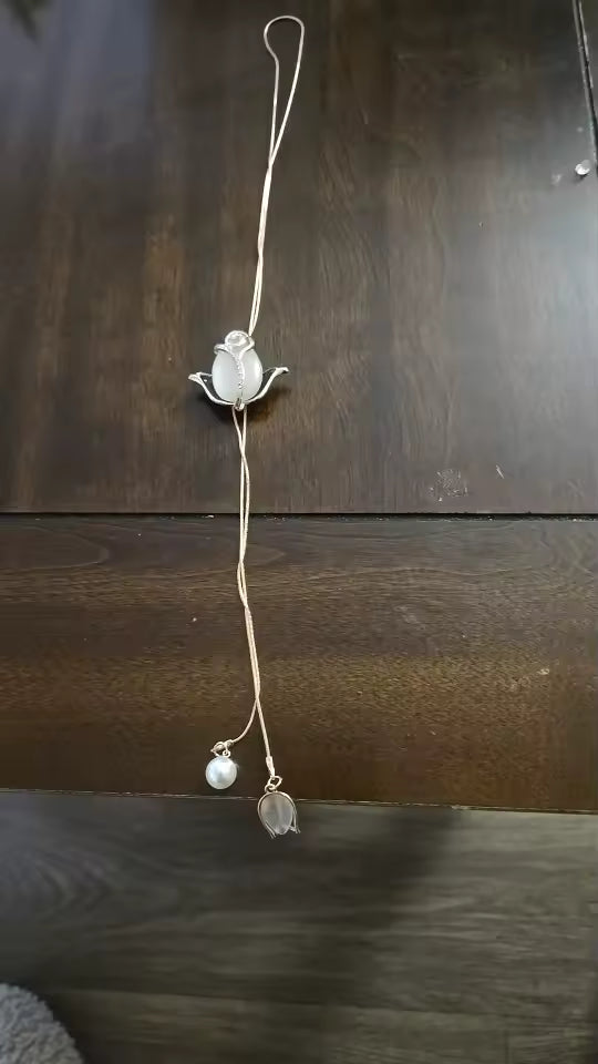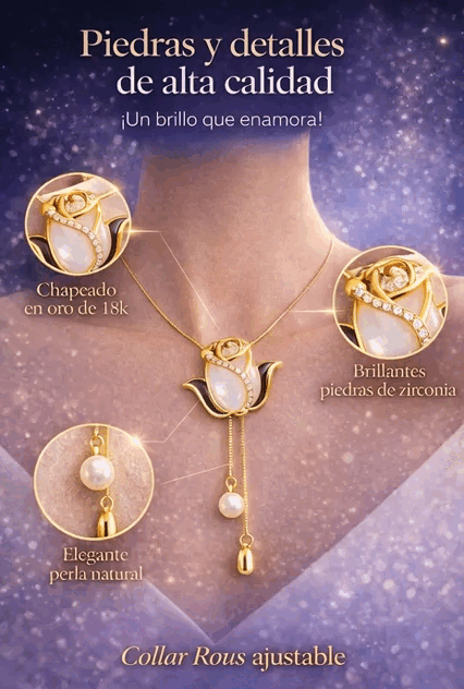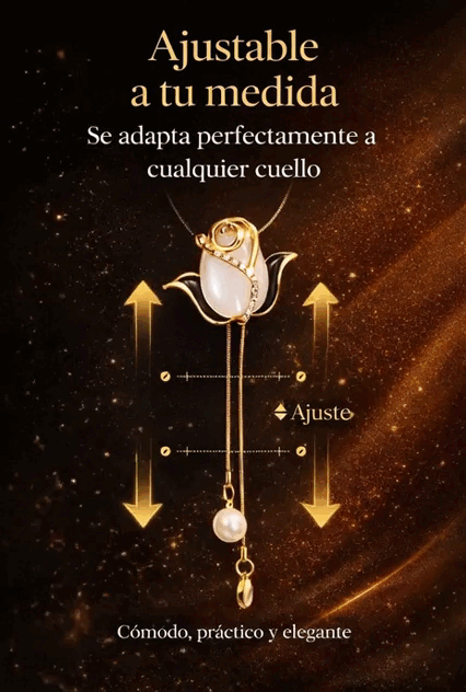 El Rosa Lariat cuenta con un sistema ajustable tipo lariat que te permite modificar el largo del collar según tu escote, outfit u ocasión.