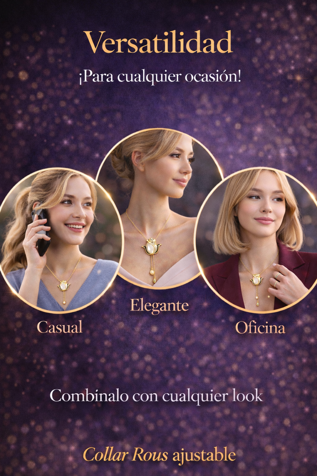 Los acabados están pensados para que el collar no luzca barato. En persona se percibe delicado, bien terminado y con presencia visual.